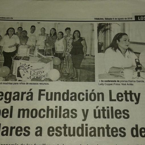 Fue la Sra. Eva Contreras Presidenta de Eagles WIngs Foundation quien felicitó la labor que desempeña la Fundación Letty Coppel a favor de los sectores más vulnerables de Los Cabos e invitó a realizar un esfuerzo en conjunto de Autoridades, Asociaciones Civiles e Iniciativa Privada con el fin de elevar la calidad de vida de los habitantes de este destino turístico.