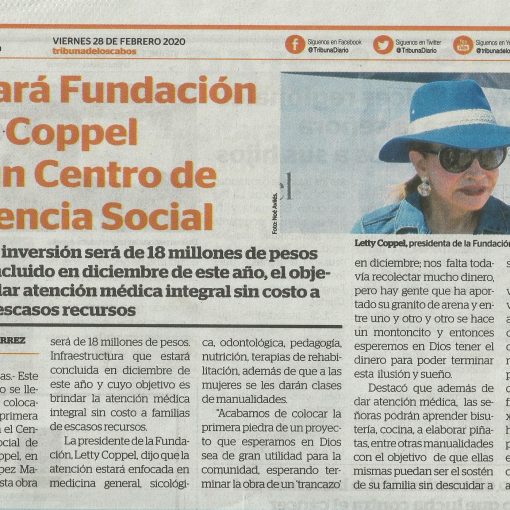 Publicada febrero 28, 2020 La colocación de la primera piedra de la construcción del Centro de Asistencia Social Fundación Letty Coppel.