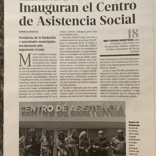 Hemeroteca Los Cabos Gracias a la revista CLUD REFORMA, por la nota del grado Doctor Honoris Causa por la labor Filantrópica, Sra. Letty Coppel. Publicada agosto 2, 2019
